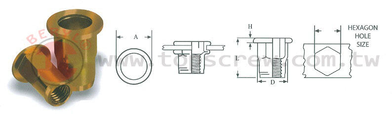1.拉帽強力且抗震螺牙的特別設計適用於薄金屬之安裝。